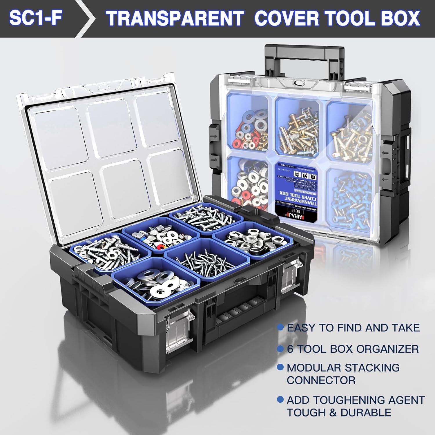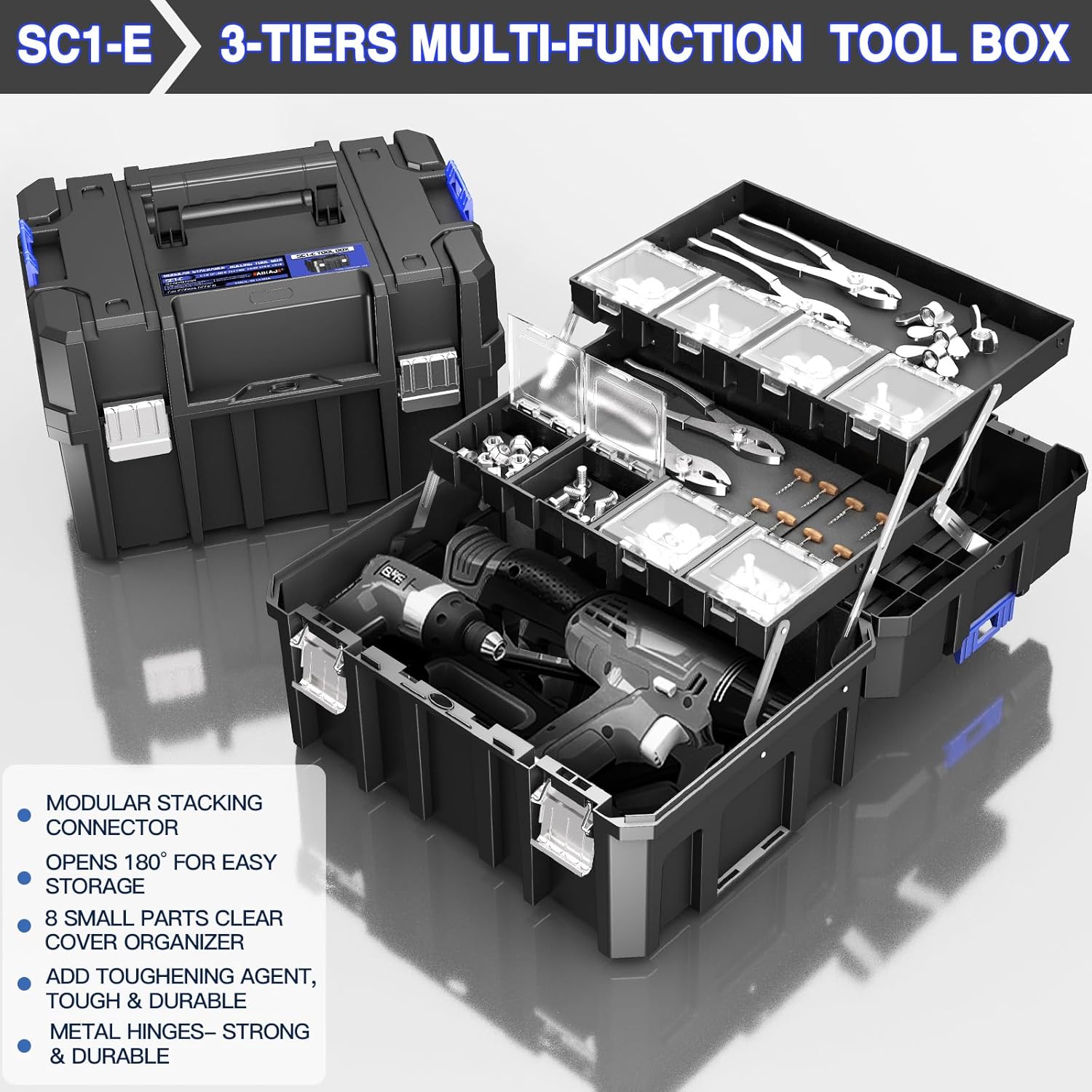 | Included Components | SC1-A: Single-layer portable tool box, SC1-C: Single-layer tool box with drawers, SC1-E: Three-layer portable tool box, SC1-F: Transparent cover tool box, SC1-G: Removable chassis for rolling tool boxes |